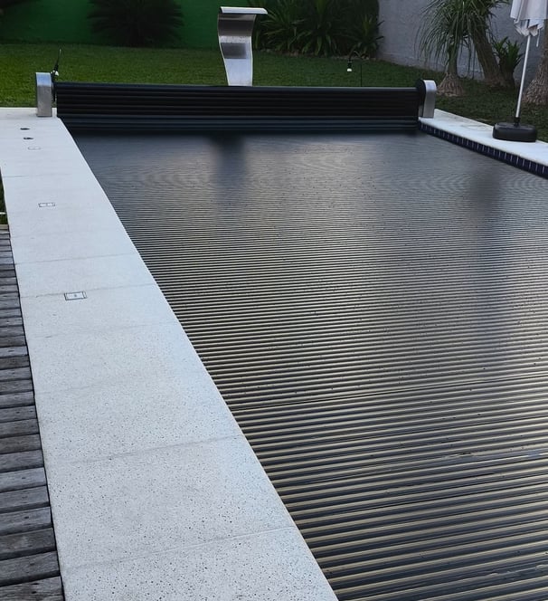 Capa automática em aluminio anotizado com enchimento em poliuretano, garantindo uma maior conservação da temperatura da sua piscina...